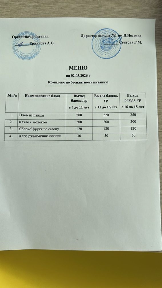 КГУ «Общеобразовательная школа №1 имени Исакова Петра Михайловича, Героя Советского Союза города Акколь отдела образования по Аккольскому району управления образования Акмолинской области»